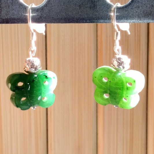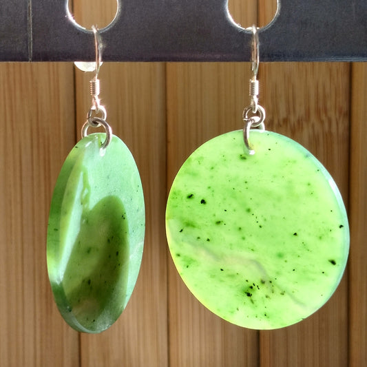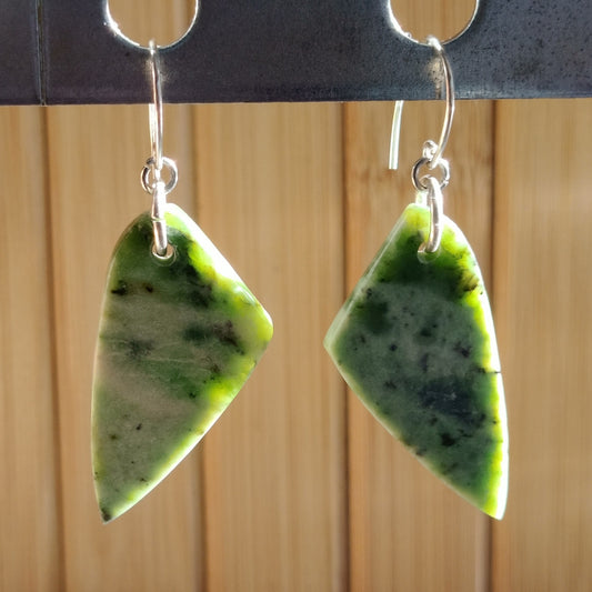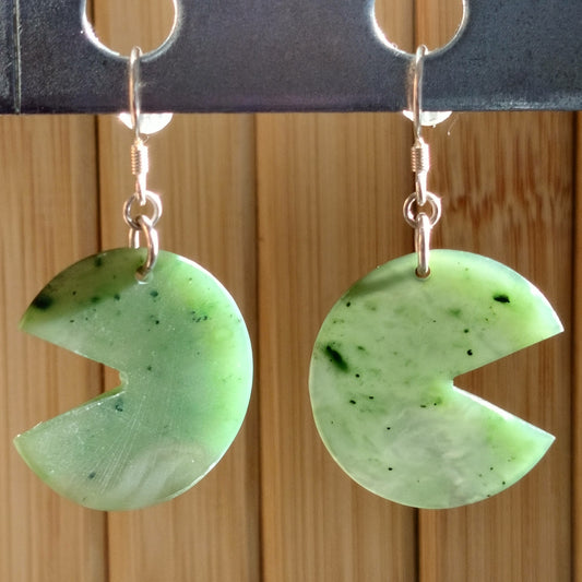 Green Jade Pacman Style Earrings with Sterling Silver Hook