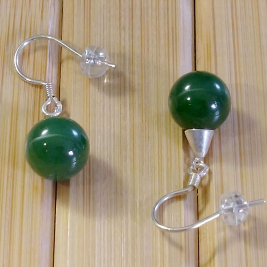 Green Grade A BC Jade Beaded Sterling Silver Earrings
