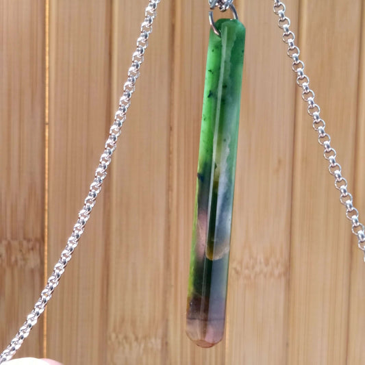 Green Jade Live Edge Sleek Pendant on Stainless Steel Chain