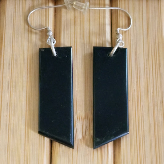 Black Jade and Sterling Silver Rectangle Pointed Earrings