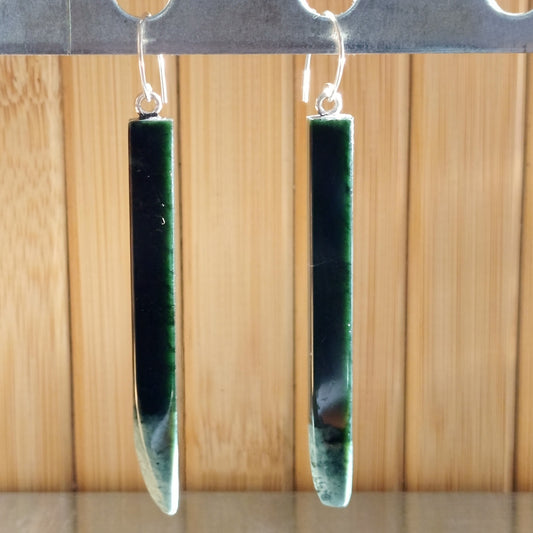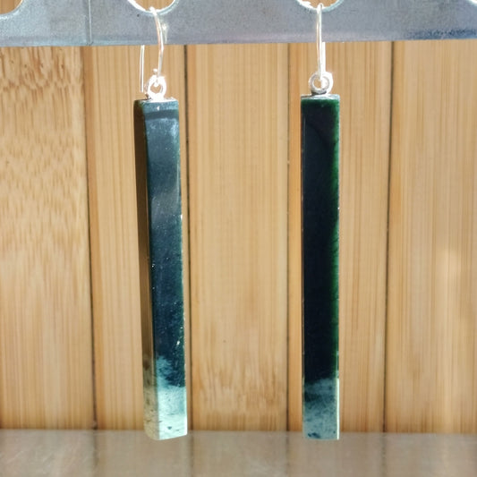 Black Jade and Sterling Silver Rectangle Live Edge Pointed Earrings