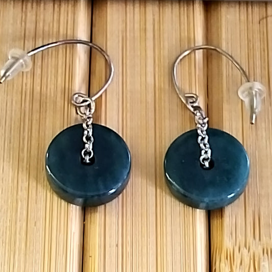 Blue Jade Pi Disc Earrings with Silver Chain – Infinite Elegance